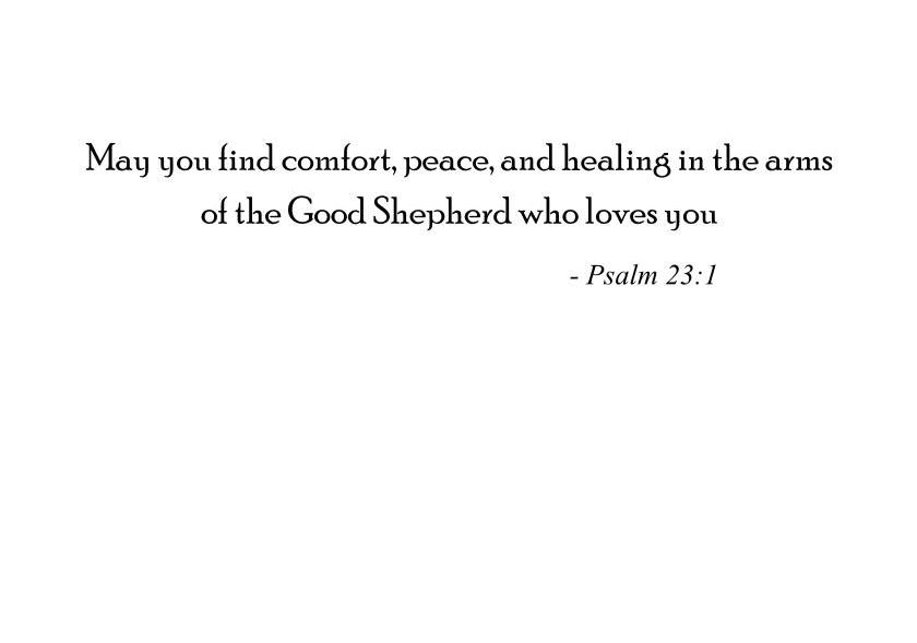 Inside message (Bottom): May you find comfort, peace, and healing in the arms of the Good Shepherd who loves you. - Psalm 23:1
